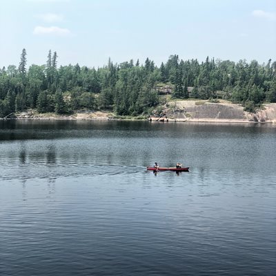 Canoers paddling on a river in Manitoba