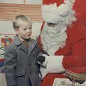 All I can think of is this photo. I think it might have been taken during the holiday season. I have no idea who the guy in red is.